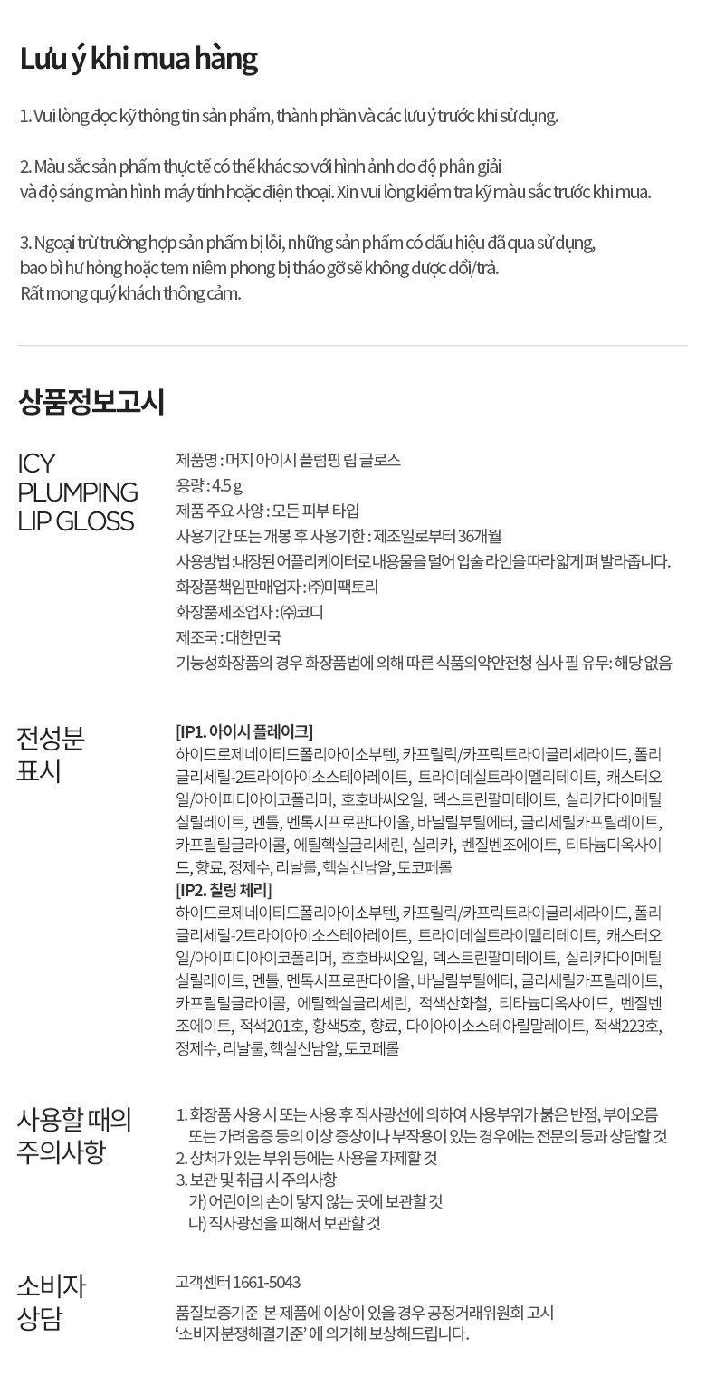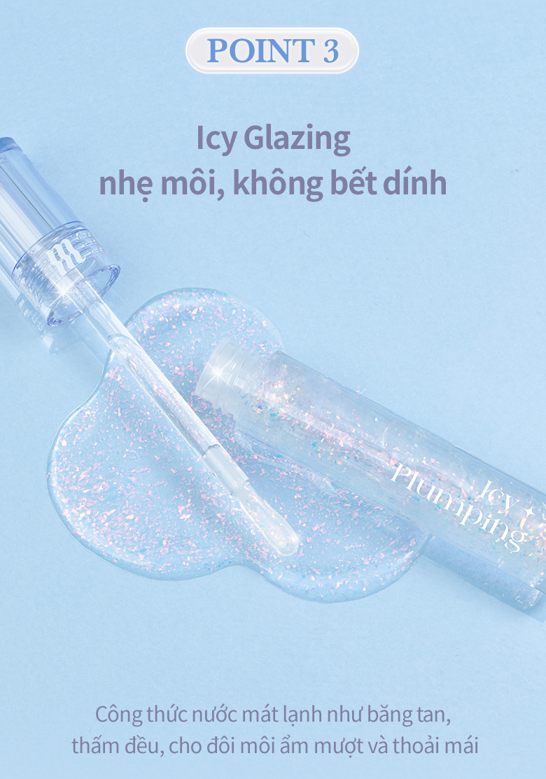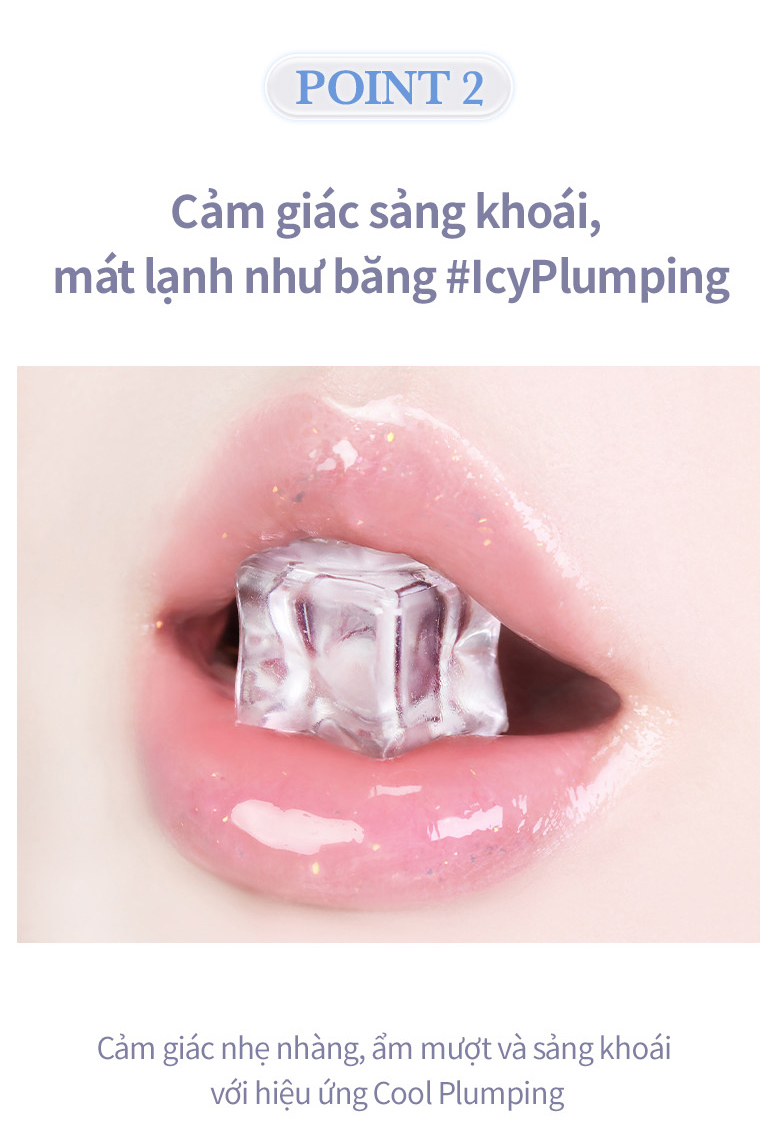 - Kết cấu Icy Glazing phủ mịn môi, tạo độ bóng và căng mọng chỉ với một lần chạm.